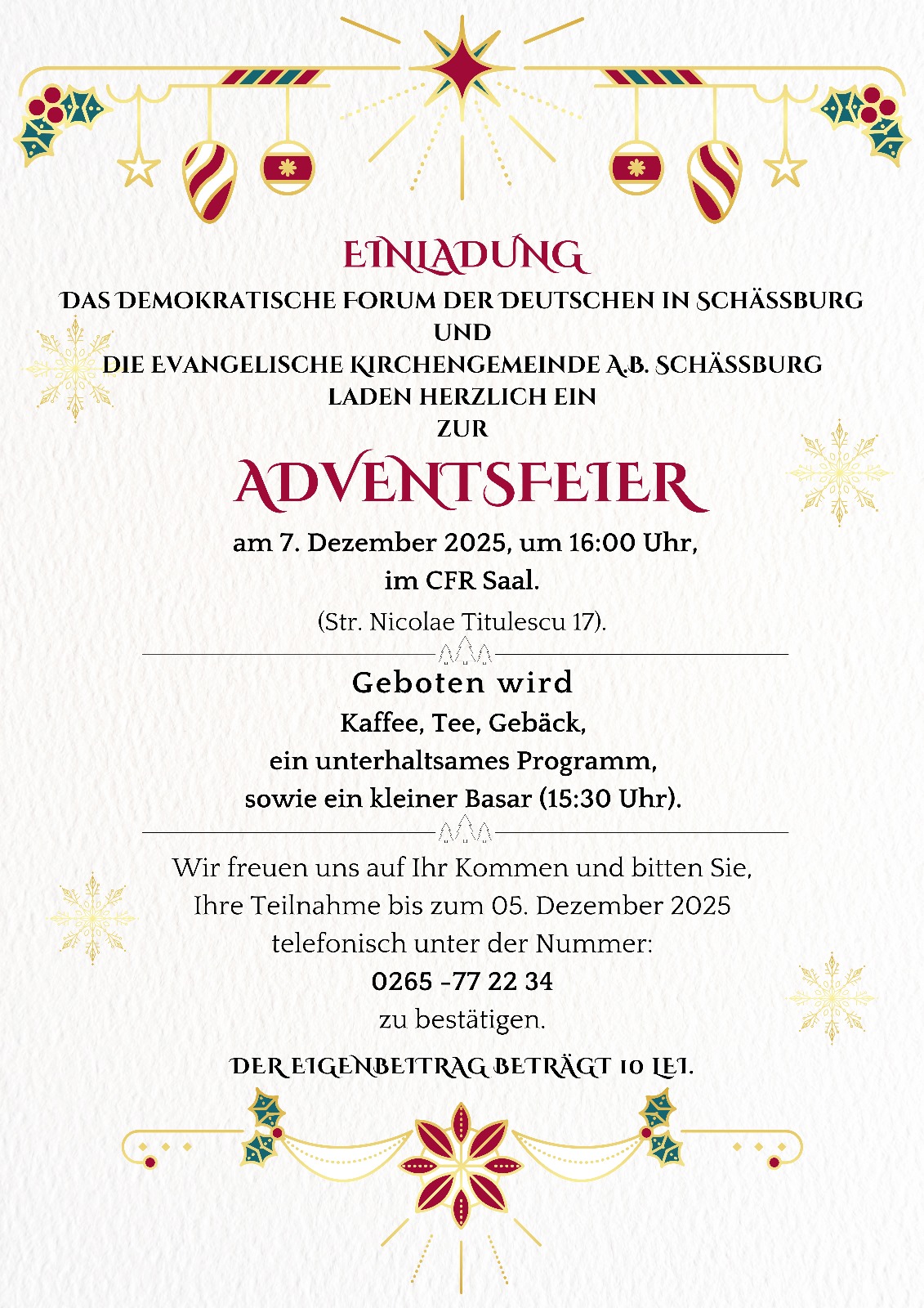 Evangelische Kirchengemeinde A.B. Schäßburg laden herzlich zur